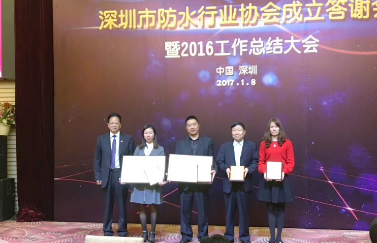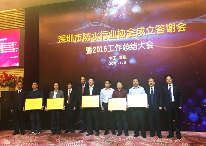 2017年1月8日,“深圳市防水行業(yè)協(xié)會成立答謝會暨2016工作總結大會”在南國錦繡鵬城隆重召開,會議以“開拓創(chuàng)新,和諧共進,不忘初心,逐夢前行”為主題。出席本次會議的有深圳市住建局,質(zhì)檢總站、深圳市社會組織管理局等政府部門相關領導、中國建筑防水協(xié)會秘書長朱冬青、副會長苗燕、中國建筑業(yè)協(xié)會建筑防水分會秘書長曲慧、湖北工業(yè)大學院校專家、20多個省市協(xié)會領導以及各地防水企業(yè)代表共計240余人。