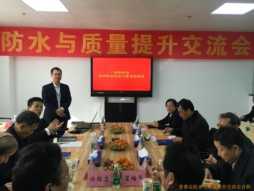 2016年1月11日由會(huì)長(zhǎng)瞿培華教授帶隊(duì),深圳市防水(專業(yè))專家委員會(huì)組織部分專家委員走訪調(diào)研了廣東普賽達(dá)密封粘膠有限公司,并針對(duì)“防水與質(zhì)量提升”進(jìn)行了專題指導(dǎo)交流。