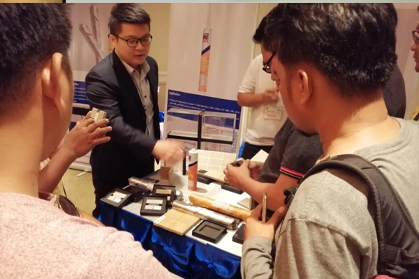 此次經(jīng)銷商大會除對當?shù)厥袌龅慕ㄖz情況進行探討外,還進行了產(chǎn)品推廣會。產(chǎn)品推廣會上,普賽達主要針對水泥縫的填縫密封、鋁金屬幕墻的十字填縫,以及展瓷磚美縫進行了產(chǎn)品及現(xiàn)場施工展示。