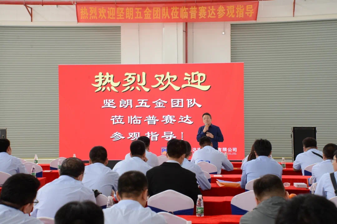 廣東普賽達(dá)董事長任紹志和東莞普賽達(dá)總經(jīng)理萬盛對堅(jiān)朗五金團(tuán)隊(duì)一行的到來表示熱烈歡迎。在總工程師廖工的帶領(lǐng)下,堅(jiān)朗五金團(tuán)隊(duì)一行參觀了基地的立體智能倉庫、原料前處理廠房、全自動智能生產(chǎn)車間。參觀過程中,廖工詳細(xì)講解了設(shè)備生產(chǎn)加工技術(shù)與原材料自動輸送流程,并對銷售團(tuán)隊(duì)提出的問題做了耐心解答。