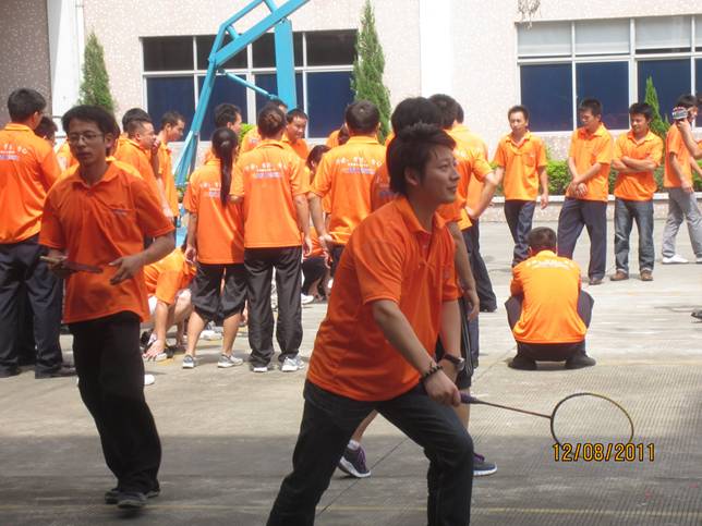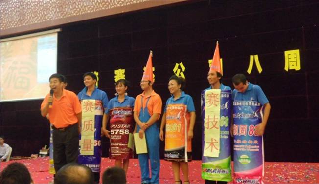 第一部分,拓展活動。8月12日上午8:30全體普賽達人整齊、有序的聚集在行政大樓前,接受公司創(chuàng)始人兼總經(jīng)理任總廠慶的致詞。接下來普賽達公司在歡快的鑼鼓聲、震耳欲聾的禮炮聲中拉開了8周歲生日慶典的序幕。上午廠區(qū)拓展活動有拔河比賽、羽毛球比賽、乒乓球比賽、摸著石頭過河等拓展活動。每個項目都有嘉賓參與其中,且所有嘉賓都換上了普賽達密封粘膠橙色廣告衫。在整個拓展活動的過程中,映入我們眼簾的盡是一片片、一處處、一點點橙燦燦的色彩。此時此刻我們已分不清楚嘉賓和員工,只知道我們都是普賽達人,我們盡情的歡笑、我們快樂的參與,我們爭先恐后向家人展示自己的熱情與活力,讓我們的家人感受到我們永不服輸、敢于拼搏的精神。