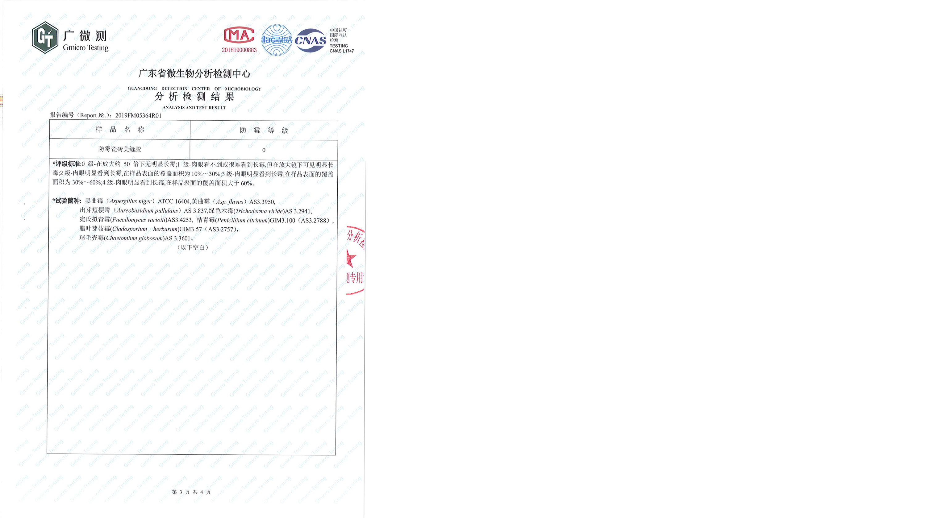 防霉等級 JC/T 885 |