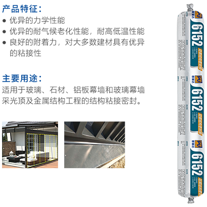 6152為單組分濕氣固化密封膠,采用中性硅酮膠作為原料,對環(huán)境無污染,與金屬、陶瓷、玻璃、石材等多種基材具有良好的密封粘接性能。