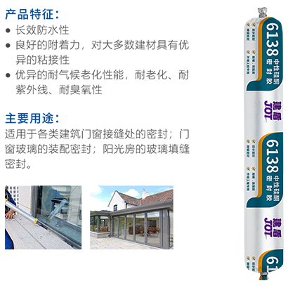 6138為單組分濕氣固化密封膠,采用中性硅酮膠作為原料, 對(duì)環(huán)境無污染,與金屬、陶瓷、玻璃、石材等多種基材具有良好的密封粘接性能。